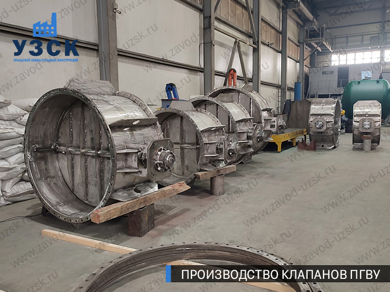 Производство клапанов ПГВУ осуществлено из стали 12Х18Н10Т и 20Х23Н18 по чертежам заказчика. Круглые клапаны Ду 500 — Ду 1700 мм изготовлены в полном соответствии с конструкторской документации заказчика. Сварные соединения выполнены аттестованными сварщиками и соответствуют ГОСТ 14771-76 и ГОСТ 16037-80.