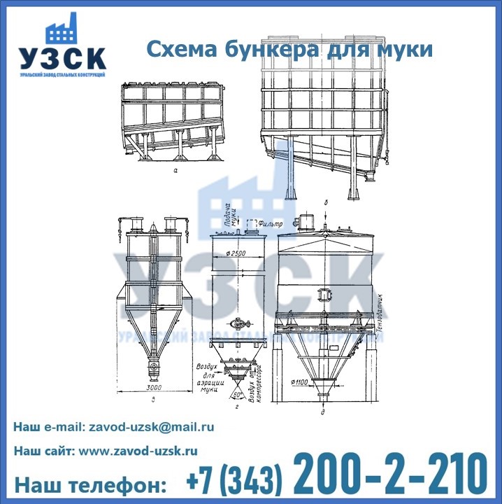 Завод «УЗСК» в Саратове проектирует, производит и поставляет целевое оборудование, в том числе, бункеры для хранения муки и прочих сыпучих материалов.
