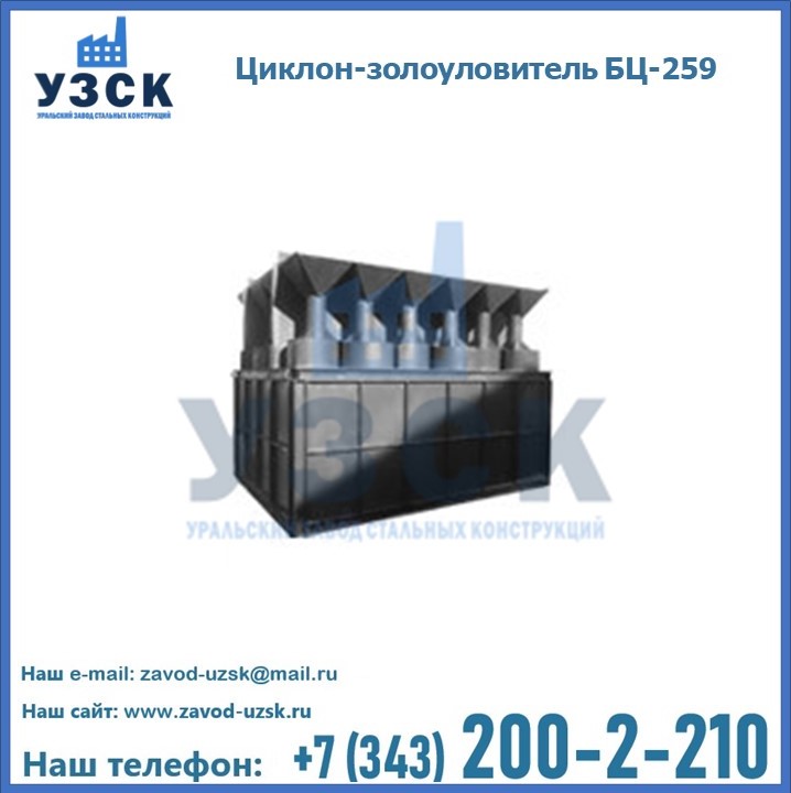 Если вы планируете купить то или иное оборудование, например, циклоны-золоуловители БЦ-259, то рекомендуем заказать данный товар на сайте УЗСК. Мы производим и реализуем продукцию высокого качества по приемлемой цене. Эксперты Уральского Завода Стальных Конструкций в Саратове проконсультируют вас по всем вопросам, помогут сделать выбор и оформить заказ без лишних временных затрат. Мы гарантируем соответствие нашей продукции всем требованиям ГОСТ и ТУ, а также износостойкость и высокую производительность предлагаемого оборудования. Если требуется изготовить циклон нестандартных размеров, то такой вариант выполнения заказа тоже предусмотрен, так как предприятие имеет собственные производственные площади и надежных поставщиков. На все поставляемое или производимое оборудование имеются чертежи и прочая техническая документация. Заказать и купить циклоны или прочее оборудование высокого качества и по доступной цене можно через наш сайт или по указанному в разделе «Контакты» телефону.
