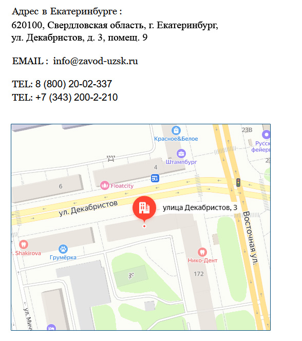 Наши контакты Информационно-сервисное представительствоАдрес: 410056, Россия, Саратов, Белоглинская улица, 75/81E-Mail: saratov@zavod-uzsk.ruТелефон: Звонок по России бесплатный!Время работы:ПН — 09.00 — 20.00ВТ — 09.00 — 20.00СР — 09.00 — 20.00ЧТ — 09.00 — 20.00ПТ — 09.00 — 18.00СБ — выходнойВС — выходной