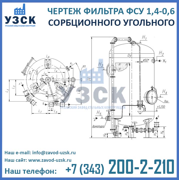 Если вы ищете фильтры ФСУ-1,4-0,6 в Саратове от изготовителя, то Вы на правильном пути! Уральский завод стальных конструкций – непосредственный производитель сорбционных фильтров ФСУ, предлагающий самые выгодные цены на ФСУ-1.4-0.6 в Саратове. По окончании процесса производства угольные фильтры проходят гидравлические испытания пробным давлением 0,9 МПа на аттестованном гидростенде, находящимся в собственности завода УЗСК. Мы гарантируем высокое качество выпускаемой продукции, и в этом уже убедились ведущие предприятия промышленного сектора России и стран ЕАЭС (см. раздел «Наши клиенты»).