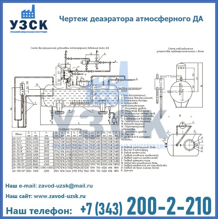 Приобрести качественное оборудование, в том числе, деаэраторы ДА, можно в компании УЗСК в Саратове. Мы предлагаем долговечную и надежную продукцию по приемлемой цене. Заказать и купить деаэраторы или другие изделия высокого качества можно через сайт Уральского Завода Стальных Конструкций, или позвонив по указанному в разделе «Контакты» телефону.